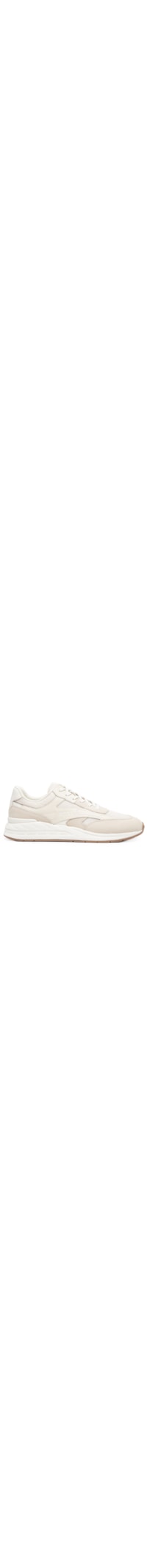 O tênis bege é produzido em mesh. A peça possui bico arredondado, recortes frontais e laterais sobrepostos em nobuck, recortes laterais em couro com superfície texturizada, nome da marca timbrado na lateral, lingueta acolchoada com tag da marca bordada, parte posterior com recortes sobrepostos e nome da marca timbrado, palmilha macia com nome da marca aplicado em cor contrastante, entressola emborrachada com detalhes de frisos e nome da marca em relevo, solado emborrachado e ajuste superior por cadarço.