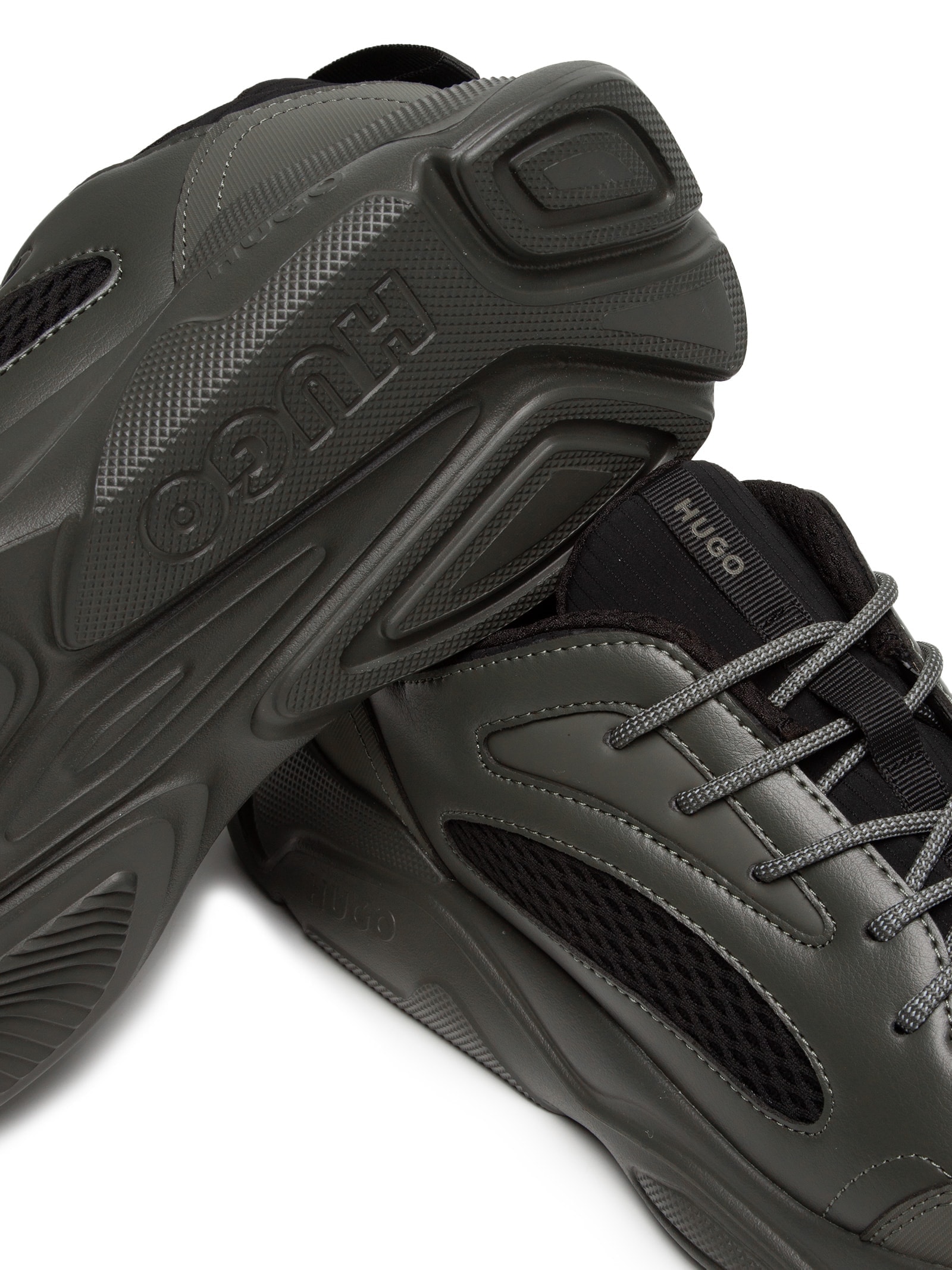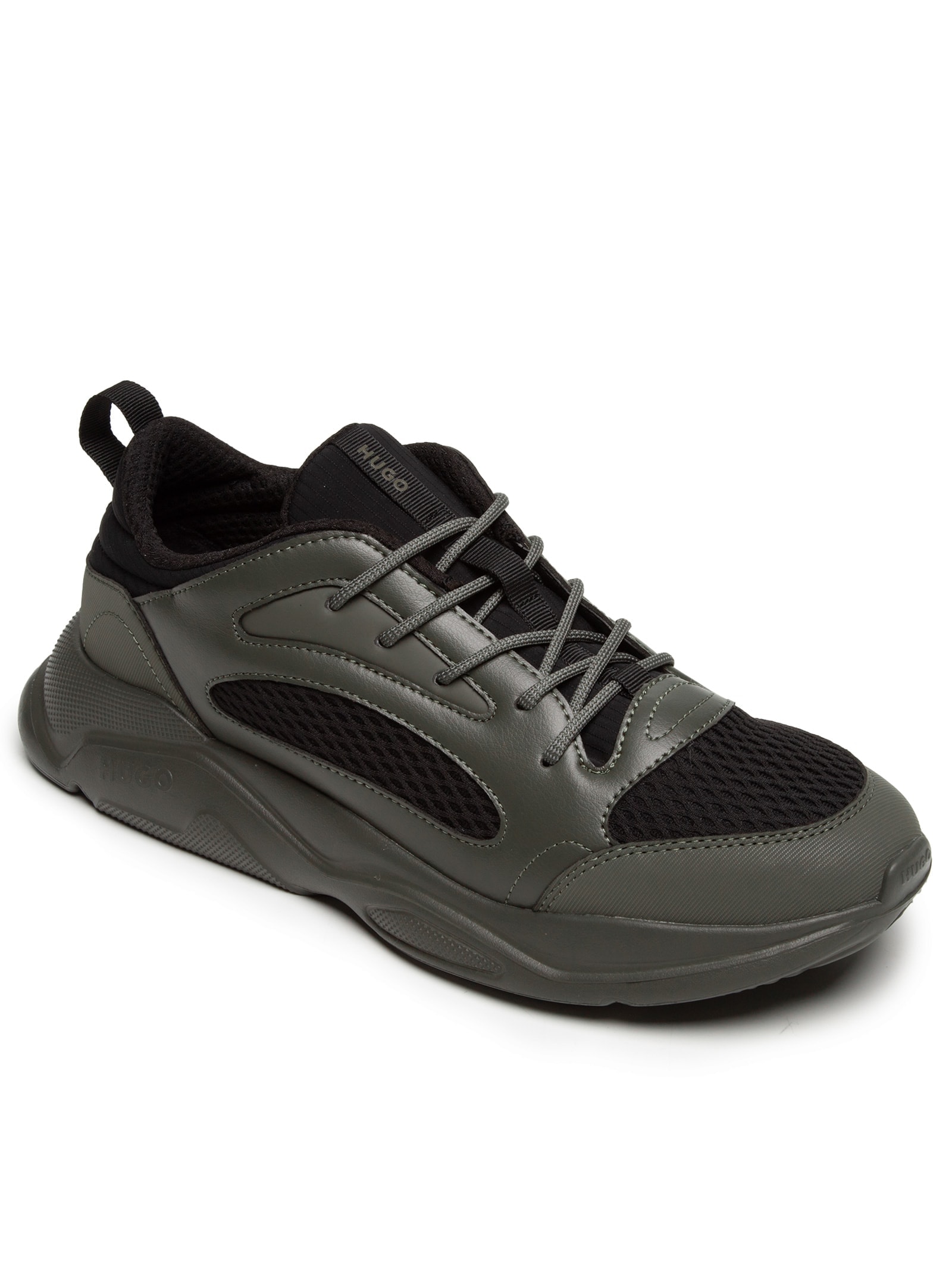 Aposte em uma peça chave no seu dia a dia e que exalte o seu estilo com este tênis Hugo combinado com uma camisa sobreposta por uma blusa moletom preta e uma calça lisa com as barras dobradas para finalizar o visual.