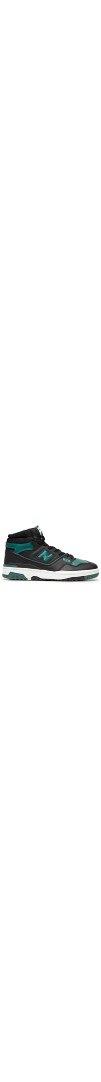 O tênis preto é produzido em couro. A peça de modelo 650 possui cano alto acolchoado, bico arredondado, recorte frontal e posterior de cor contrastante, recortes laterais sobrepostos com detalhes de vivos em cor contrastante, parte frontal e laterais com detalhes de perfuros, iniciais da marca aplicadas na lateral em relevo de cor contrastante, logo da marca aplicado na parte posterior, nome da marca e modelo aplicados na lateral, lingueta acolchoada em mesh com tag da marca em cor contrastante, palmilha macia com logo da marca aplicado, entressola emborrachada com recortes em tons contrastantes com superfície texturizada e logo e nome da marca em relevo, solado emborrachado e ajuste superior por cadarço.