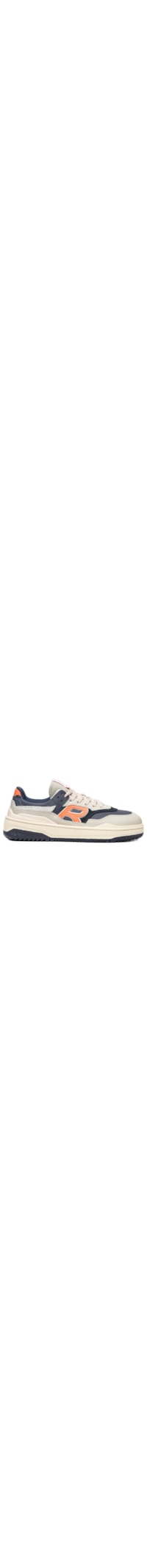 O tênis azul é produzido em couro. A peça possui bico arredondado, recortes frontal, laterais e posterior em cores contrastantes, recortes laterais em camurça em cor contrastante, logo da marca aplicado na lateral com detalhes pespontados em cor contrastante, logo na marca timbrado na parte posterior, lingueta macia em lona com tag da marca aplicada, entressola e sola emborrachadas e texturizadas em cor contrastante, fechamento superior por cadarço em cor contrastante.