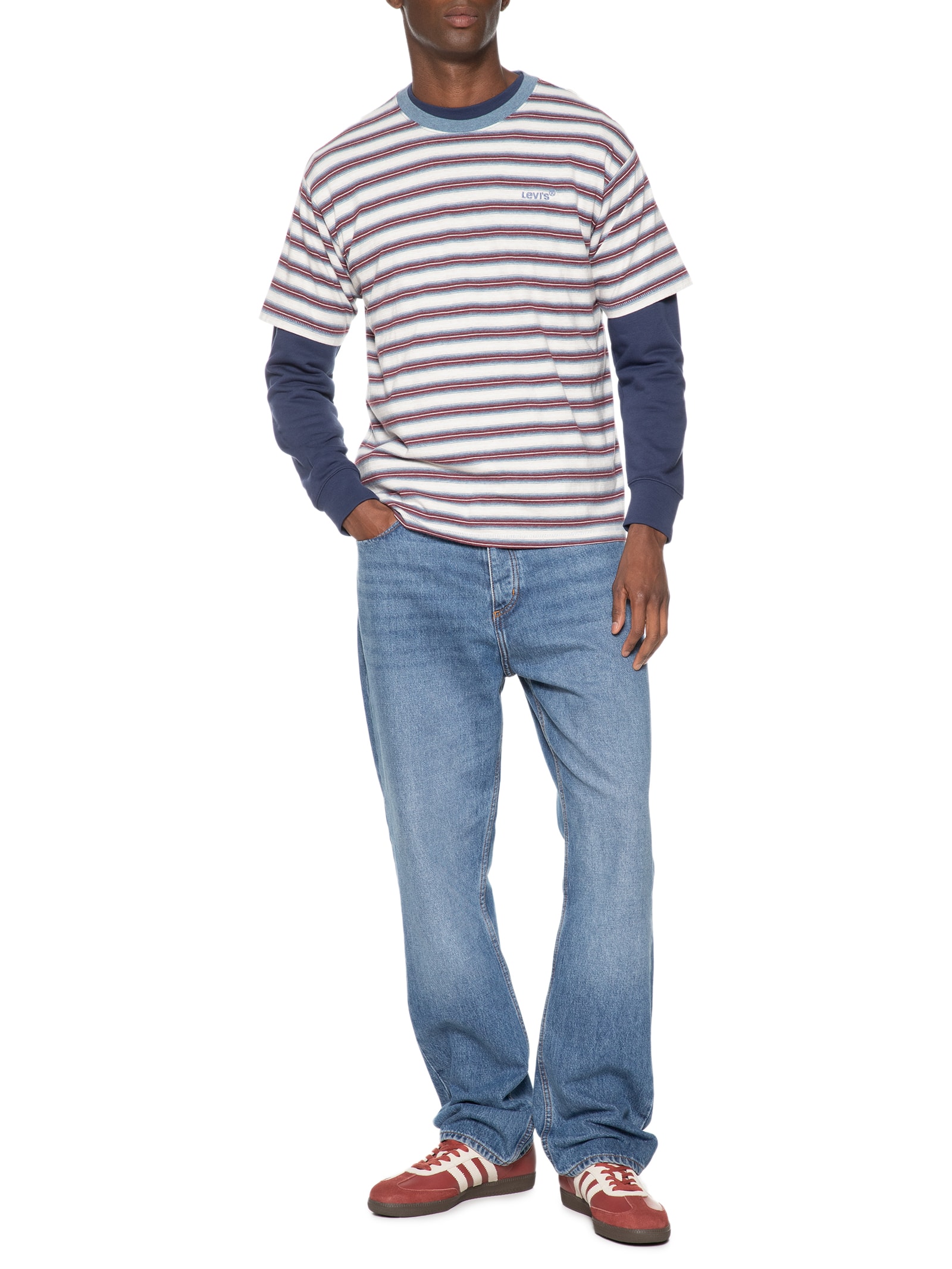 Dê um ar descolado no seu visual com este tênis Adidas Originals combinado com uma blusa sobreposta por uma camiseta listrada e uma calça jeans para finalizar o visual.