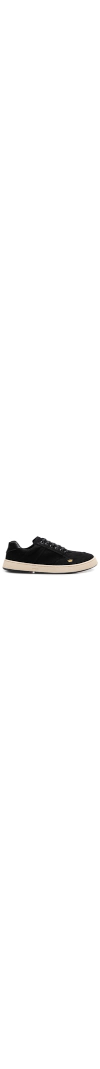 O tênis preto é produzido em lona. A peça possui bico arredondado, detalhe de recortes, logo da marca em cor contrastante aplicado na parte frontal, recorte posterior em couro com nome da marca aplicado em relevo, entressola em EVA com detalhe de listra em relevo, palmilha macia, solado emborrachado com detalhe de listras em cores contrastantes, acabamento pespontado e fechamento por cadarço.