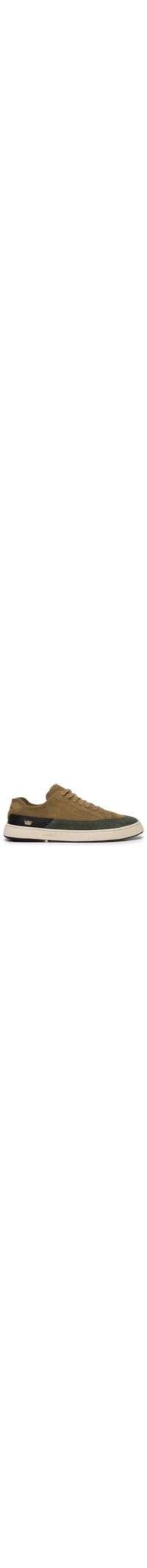 O tênis marrom é produzido em couro camurça. A peça possui bico arredondado, recorte frontal e lateral em cor contrastante, detalhe lateral com aplicação de logo em cor contrastante, lingueta acolchoada, palmilha macia, entressola emborrachada com nome da marca em relevo, salto baixo, solado emborrachado com frisos e fechamento superior por cadarço.
