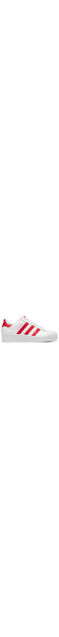 O tênis vermelho é produzido em couro. A peça de modelo superstar possui cano baixo acolchoado, bico arredondado, parte frontal em borracha com superfície texturizada, laterais com listras serrilhada de cor contrastante e detalhes de perfuros, recorte posterior de cor contrastante com nome e logo da marca, lingueta com tag da marca aplicada, palmilha macia, entressola emborrachada com superfície levemente texturizada, solado emborrachado e ajuste superior por cadarço.