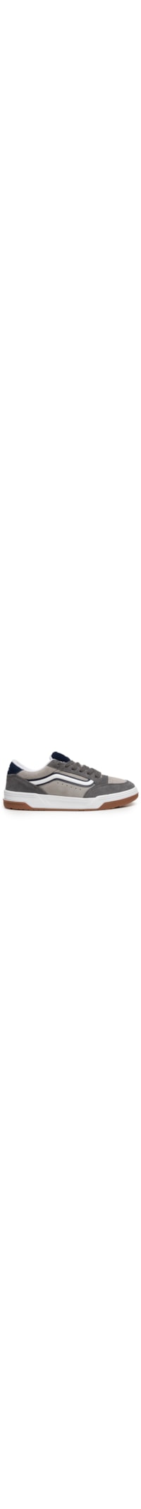 O tênis cinza é produzido em camurça. A peça possui bico arredondado, cano baixo acolchoado, forro em cor contrastante, lingueta acolchoada com nome da marca em cor contrastante, recortes em cores contrastantes, perfuros nas partes frontal e laterais, recorte posterior com nome da marca em cor contrastante, entressola emborrachada, solado emborrachado e fechamento superior por cadarço.