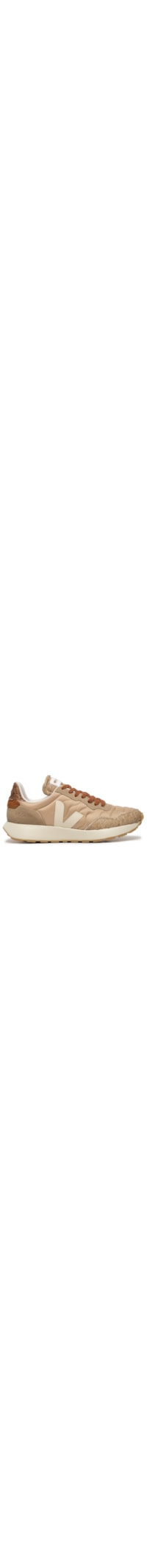 O tênis bege é produzido em couro e camurça. Possui bico arredondado, recortes em materiais contrastantes, aplicação lateral de logo em material sintético, lingueta acolchoada com tag da marca aplicada, palmilha macia, entressola emborrachada com acabamento texturizado, solado emborrachado tratorado e fechamento superior por cadarço.