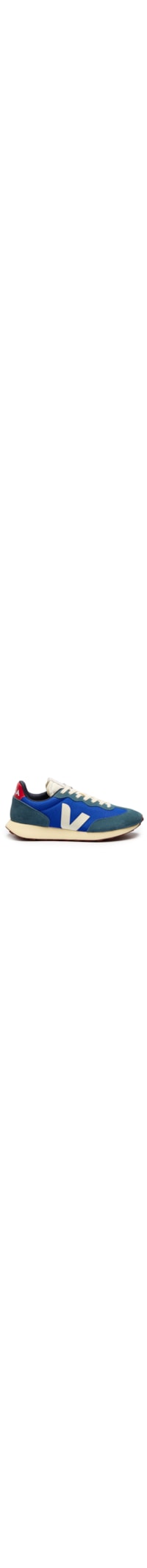 O tênis azul é produzido em Alveomesh. A peça possui bico arredondado, cano baixo, lingueta em material têxtil bege com tag da marca bordada, recortes em camurça, logo da marca aplicado em borracha nas partes laterais em cor contrastante, recorte posterior em TPU vermelho com nome da marca estampado na cor branca, nome da marca em baixo-relevo na parte lateral, entressola em EVA bege, solado emborrachado e fechamento superior por cadarço.