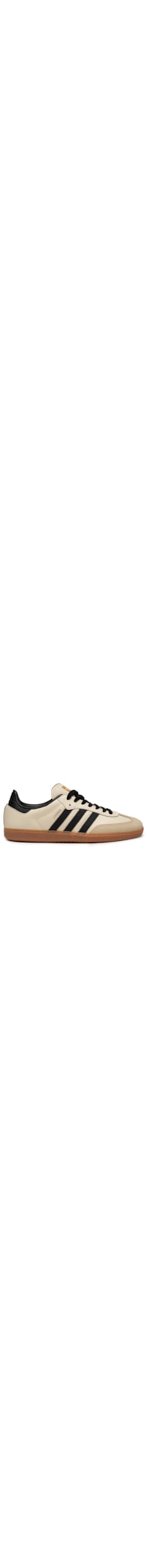 O tênis bege é produzido em couro. A peça possui bico arredondado, cano baixo acolchoado, lingueta com tag da marca na cor dourada, recorte frontal que se estende as partes laterais em tom contrastante, listras laterais e recorte posterior na cor preta, escrita estampada na parte lateral em cor contrastante, entressola emborrachada em cor contrastante, solado emborrachado e fechamento superior por cadarço.