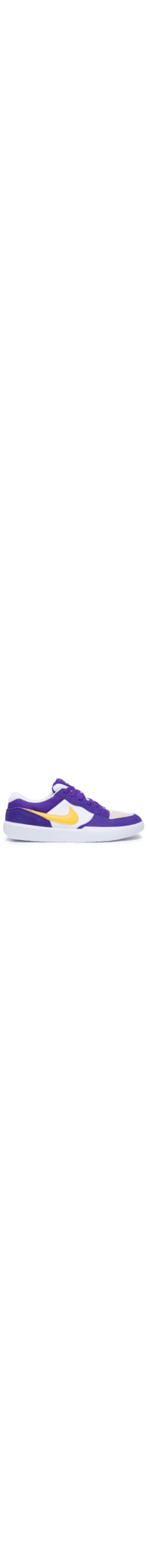 O tênis roxo é produzido em lona. A peça possui bico arredondado, recortes frontais e posterior sobrepostos em suede de tons contrastantes, parte frontal com logo da marca bordado em cor contrastante e perfuros, logo da marca aplicado em couro de cor contrastante nas laterais, lingueta acolchoada em mesh com logo e nome da marca aplicados com superfície envernizada, calcanhar acolchoado, palmilha macia com logo e nome da marca em cor contrastante, entressola emborrachada com detalhes de frisos, solado vulcanizado e fechamento superior por cadarço.