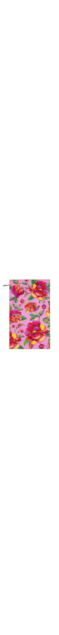 A toalha rosa é confeccionada em tecido leve sem elasticidade. A peça possui formato retangular, tamanho grande, elástico aplicado na lateral com nome da marca estampado, e mix de estampa floral em cores contrastantes.