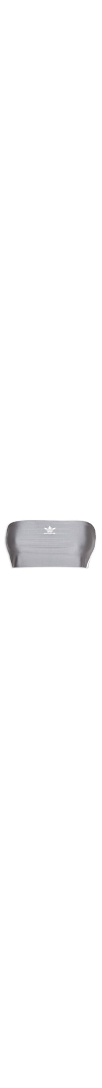 O top cinza é confeccionado em malha cirrê com alta elasticidade. A peça justa ao corpo de modelo tomara que caia possui decote reto, faixas listradas sobrepostas nas laterais na cor branca, logo da marca emborrachado aplicado na parte frontal em cor contrastante branca e comprimento cropped*.
