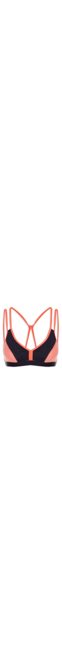 O top preto é confeccionado em malha encorpada. A peça possui decote V, alças finas duplas em cores contrastantes com detalhe de nó posterior, shape justo com leve compressão, bojo aplicado, recortes frontais em cores contrastantes, comprimento cropped e acabamento elástico.