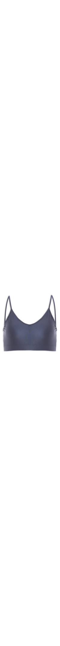 O top azul marinho é confeccionado em malha Atlétika e Luna. A peça possui shape justo, decote V, alças finas, bojo removível e acabamento elástico.