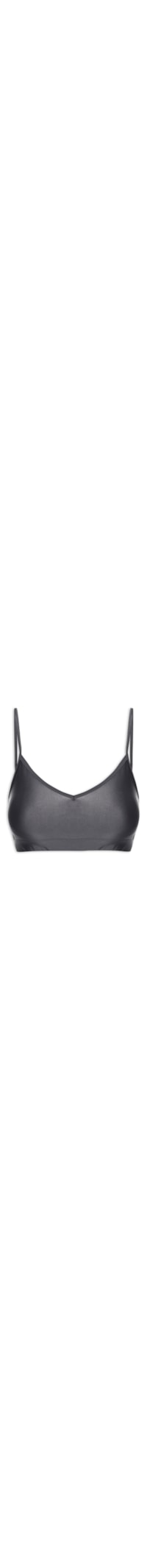 O top cinza é confeccionado malha de poliamida com média elasticidade. A peça possui decote V, alças finas, barra com elástico embutido, tag da marca aplicada em borracha de cor contrastante na parte posterior, forro, bojo fixo e comprimento cropped*.