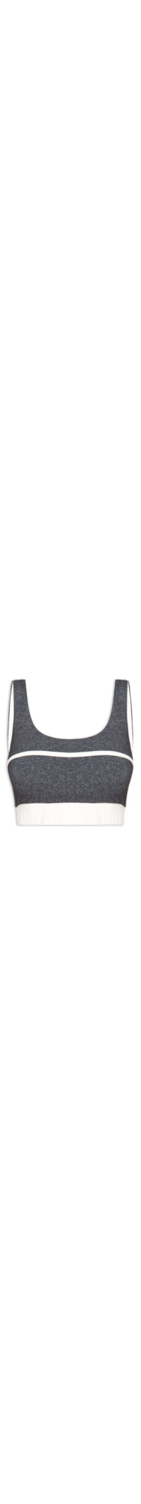 O top cinza é confeccionado em malha justa com alta elasticidade. A peça possui decote posterior e frontal em U, alças médias, cavas estendidas, tag da marca aplicada na parte posterior, forro, bojo removível, recorte frontal com viés off white, barra off white com elástico embutido e comprimento cropped*.