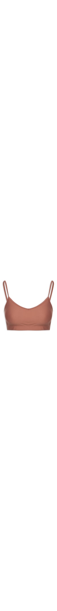 O top marrom é confeccionado em malha de poliamida com alta elasticidade. A peça justa ao corpo possui decote frontal V e decote posterior em U profundo alças finas, bojo embutido, forro, tag da marca em cor contrastante vermelho e barra com elástico embutido.