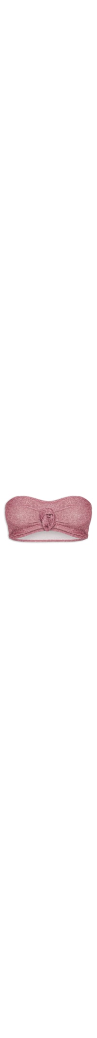O top rosa é confeccionado em malha leve com fios de lurex aplicados e com média elasticidade. A peça justa ao corpo de modelo tomara que caia, possui decote reto, franzido frontal com aplicação de flor e elástico embutido nas partes superior e inferior.