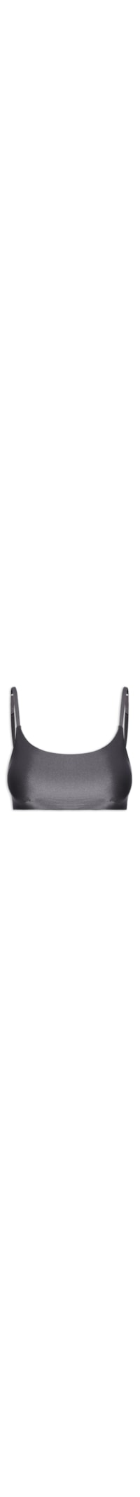 O top cinza é confeccionado em malha microfibra acetinada com alta elasticidade. A peça justa ao corpo possui decote U, alças finas duplas com regulagem, cavas estendidas, tag da marca bordada na parte posterior, bojo removível e comprimento cropped*.