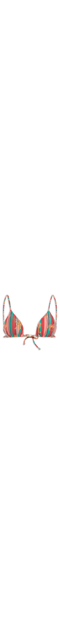 O top vermelho é confeccionado em malha com alta elasticidade. A peça de modelo cortininha possui alças finas, mix de estampas em cores contrastantes, laterais finas e fechamento posterior por amarração.