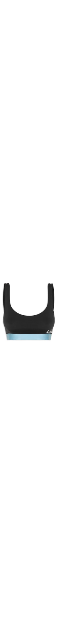 O top preto é confeccionado em malha de poliamida com média elasticidade. A peça justa ao corpo possui decote frontal e posterior em U, alças médias, nome da marca estampado na parte lateral em material refletivo, barra em malha cirrê de tom contrastante e com elástico embutido, forro, sem bojo e comprimento cropped*.