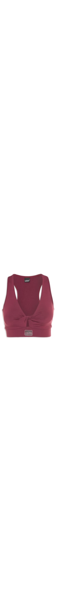 O top vinho é confeccionado em malha de poliamida. A peça possui decote v frontal com detalhe de torção, decote nadador posterior, alças médias, tag da marca emborrachada aplicada na parte frontal, shape justo, barra elástica, comprimento cropped e acabamento pespontado.