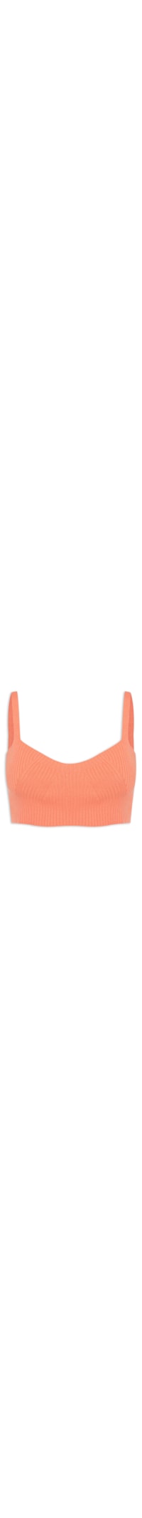 O top laranja é confeccionado em tricot. A peça possui decote coração, alças médias, cavas regulares, tag da marca aplicada na parte posterior, shape justo, caimento reto, comprimento cropped* e acabamento canelado.