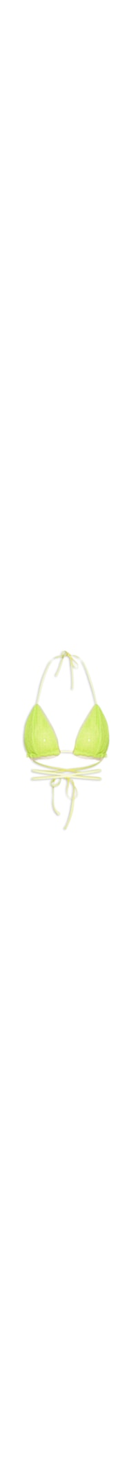 O top verde neon é confeccionado em tule com superfície em paetê. A peça modelo cortininha possui decote v ajustável, alças finas aplicadas na parte superior e inferior para ajuste e amarração, shape justo, caimento reto e acabamento elástico.