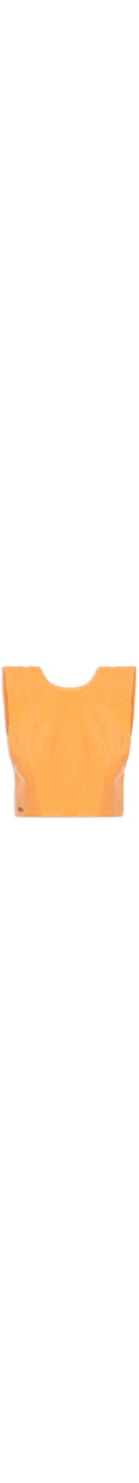 O top laranja é confeccionado em sarja sem elasticidade. A peça justa ao corpo possui decote frontal redondo e posterior quadrado, alças largas, cavas regulares, recorte posterior em lastex, recortes frontais, sem bojo, tag da marca aplicada em metal na parte frontal na altura da barra e comprimento cropped*.