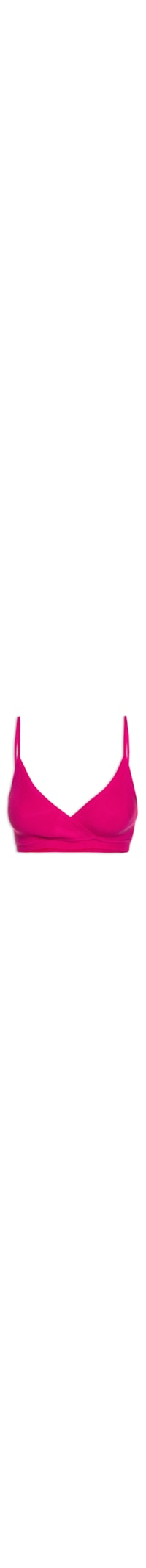 O top rosa é confeccionado em tricot. A peça possui decote v transpassado, alças finas, cavas regulares, tag metalizada da marca aplicada na parte posterior, comprimento cropped*, shape justo, caimento reto e acabamento canelado.