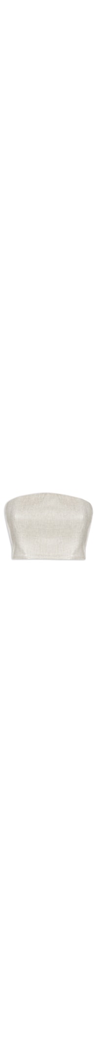 O top prata é confeccionado em tecido leve com toque de linho e fios metalizado. A peça de modelo tomara que caia possui decote reto, recortes frontais, recorte posterior em lastex, forro e shape justo.
