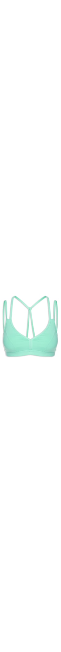 O top verde é confeccionado em malha de poliamida. A peça de comprimento cropped possui shape justo, decote v, alças duplas finas com cruzamento posterior e acabamento elástico.