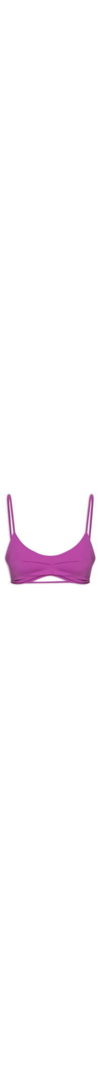 O top rosa é confeccionado em malha de poliamida com média elasticidade. A peça justa ao corpo possui decote V, alças finas, detalhe de pregas na parte frontal, recorte posterior com tira fina aplicada, logo da marca emborrachado aplicado na parte posterior, forro, bojo removível e comprimento cropped*.
