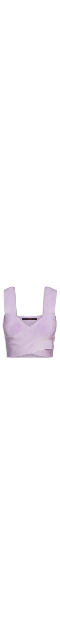 O top lilás é confeccionado por tricot com média elasticidade. A peça justa ao corpo possui decote V, alças médias, detalhe cruzado na parte frontal e comprimento cropped*.