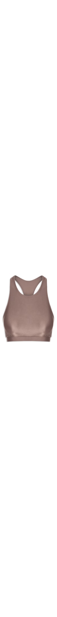 O top marrom é confeccionado em malha de poliamida com média elasticidade. A peça justa ao corpo possui decote em U, alças finas, decote posterior nadador, elástico embutido na barra, forro, bojo removível e tag da marca aplicada na parte posterior na altura da barra.