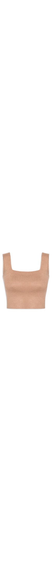 O top bege é confeccionado em tricot com média elasticidade. A peça levemente solta ao corpo possui decote quadrado, alças médias e comprimento cropped*.