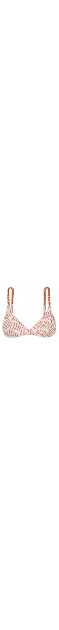 O top marrom é confeccionado em malha de poliamida com alta elasticidade. A peça de modelo triângulo possui decote V transpassado, alças finas reguláveis com recorte em cordão elástico de cor contrastante com aviamentos metalizados, estampa abstrata em cor contrastante, bojo removível, forro e fechamento posterior por amarração.