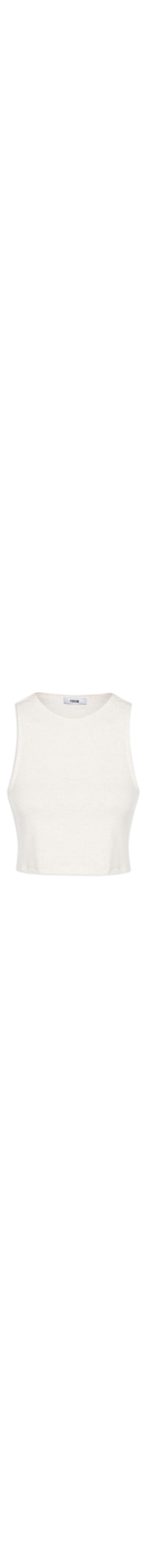 O top bege é confeccionado em malha com toque de linho e média elasticidade. A peça justa ao corpo possui decote redondo, alças médias, cavas estendidas, tag metálica da marca aplicada na parte posterior, recorte posterior vazado com argola embutida, padronagem com fios em tons contrastantes e comprimento cropped*.