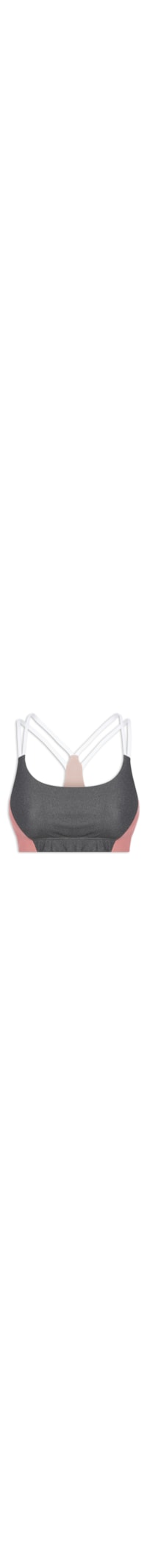 O top cinza é confeccionado em malha leve de média elasticidade. A peça justa ao corpo, possui decote em U com posterior nadador, alças finas duplas na cor branca, recortes nas laterais na cor rosa, parte posterior na cor bege, tag emborrachada da marca aplicada na parte posterior, elástico embutido na barra, bojo embutido e forro.