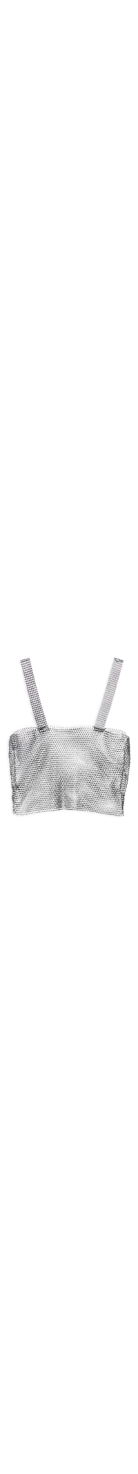 O top preto é produzido em malha metálica com superfície em strass de alta elasticidade. A peça justa ao corpo, possui decote reto, alças largas e comprimento cropped*.