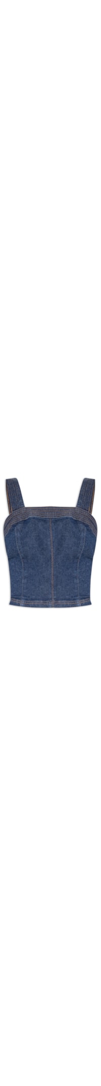 O top azul é confeccionado em sarja com lavagem jeans com baixa elasticidade. A peça justa ao corpo possui decote reto, alças médias, recortes frontais e posteriores, tag da marca aplicada na parte posterior, comprimento cropped* e fechamento posterior por zíper metálico.