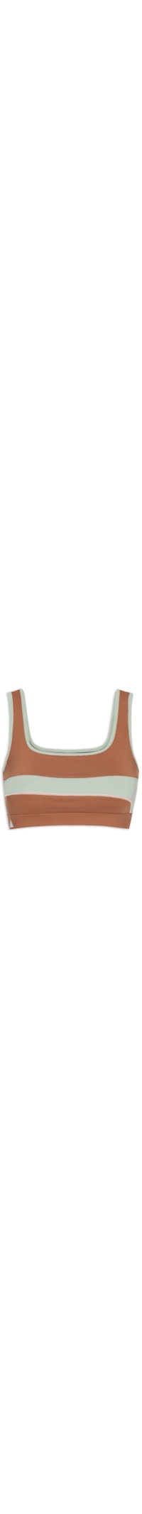 O top marrom é confeccionado em malha justa com alta elasticidade. A peça possui decote quadrado, alças médias, cavas regulares, sem bojo, viés no decote e nas cavas na cor verde, recorte posterior e frontal na cor verde, barra com elástico embutido, nome da marca estampado na cor branca na parte posterior e logo da marca estampado na cor cinza com efeito refletivo na parte frontal e comprimento cropped*.