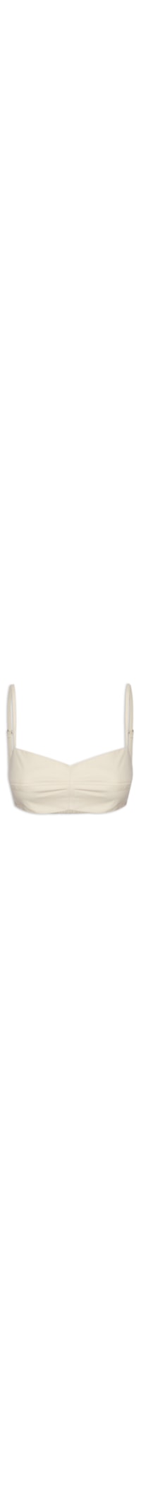 O top bege é confeccionado em tecido leve sem elasticidade. A peça justa ao corpo, possui decote coração, alças finas com regulagem, recortes frontais com pespontos, lastex aplicado na parte posterior e forro.