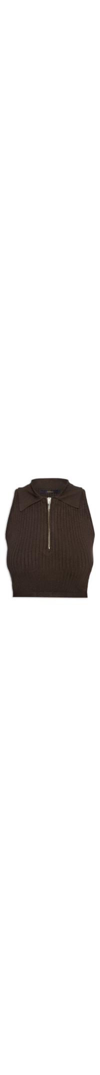 O top marrom é confeccionado em tricot canelado com alta elasticidade. A peça justa ao corpo possui gola esporte com zíper aplicado, alças médias, cavas regulares, decote posterior nadador e comprimento cropped*.