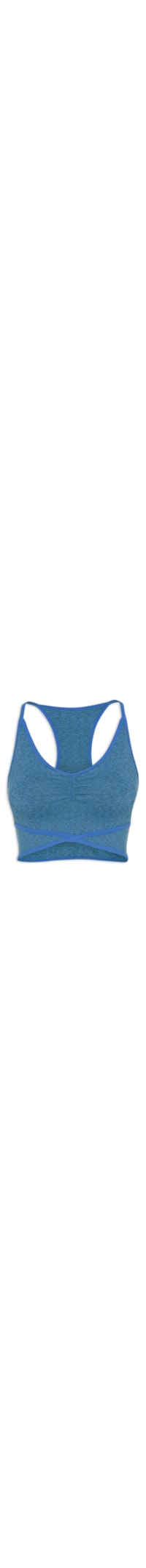 O top azul é confeccionado em malha leve de alta elasticidade. A peça justa ao corpo, possui decote em V com posterior nadador, alças finas, detalhe franzido na parte frontal, recortes com detalhe em viés na parte frontal, tag emborrachada da marca aplicada na parte posterior do decote, bojo embutido, forro e acabamento em viés.