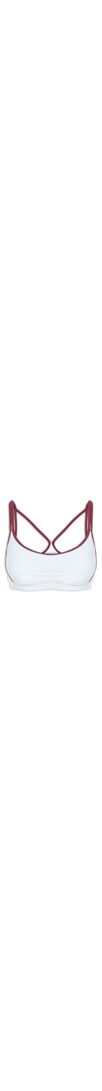 O top azul é confeccionado em malha leve de alta elasticidade. A peça justa ao corpo, possui decote em U com acabamento em cor contrastante, barra com elástico embutido, decote posterior nadador com recortes vazados, tag emborrachada da marca aplicada na parte posterior da barra, bojo removível e forro.