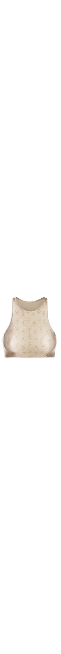 O top bege é confeccionado em malha justa com alta elasticidade. A peça possui decote trapézio, alças médias, cavas regulares, estampa abstrata em cores contrastantes, barra com elástico embutido e comprimento cropped*.