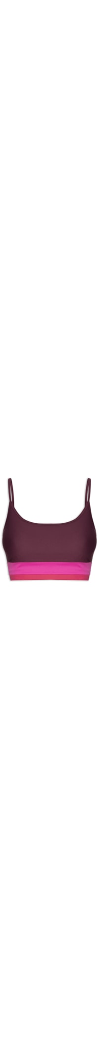 O top vinho é confeccionado em malha justa com alta elasticidade. A peça possui decote U, alças finas com regulagem, cavas regulares, bojo, barra em cores contrastantes com elástico embutido e comprimento cropped*.