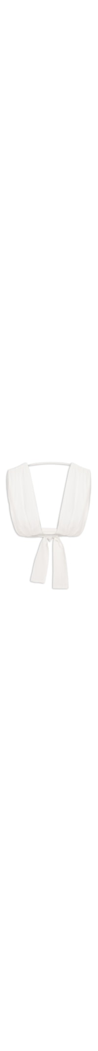 O top off white é confeccionado em tecido leve com toque de linho sem elasticidade. A peça justa ao corpo de modelo frente única possui decote vazado, alças grossas com detalhes de pregas, faixas alongadas na altura da barra para amarração posterior, recorte posterior vazado e comprimento cropped*