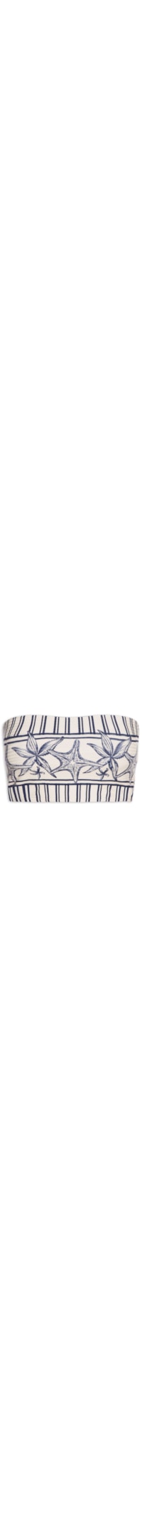 O top branco é confeccionado em tecido leve com média elasticidade. A peça justa ao corpo de modelo tomara que caia, possui decote reto, elástico embutido na barra, superfície com acabamento canelado e mix de estampas em cor contrastante.