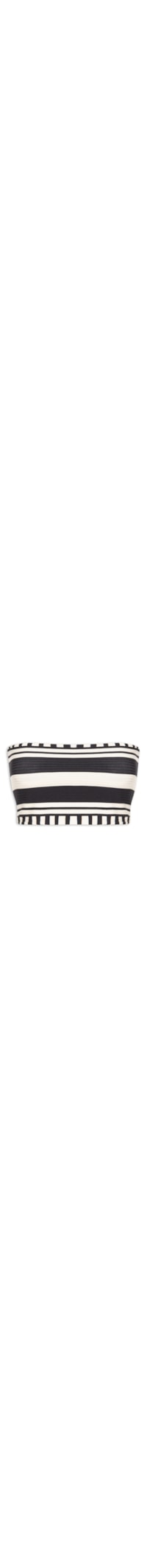 O top preto é confeccionada em tecido leve com acabamento canelado e baixa elasticidade. A peça de modelo tomara que caia possui decote reto, mix de estampas em cor contrastante e comprimento cropped*.